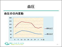 更に、そんな健康診断や人間ドックに加え、日々の生活の中で「セルフヘルスチェック」をすることも大切です。例えば「血圧」。狭心症や脳梗塞を引き起こす高血圧症の予防には、自身の血圧を測定し、その変化に気づくことが鍵を握ります。血圧は1日の中で大きく変動するので、決まった時間に測定したり、カフェインは血圧の一時的な上昇をもたらすので、測定前の摂取は控えるよう、参加者の皆さんに伝えました。