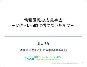 先日、幼稚園の教諭の皆さんを対象としたオンラインセミナーで、子どもの応急手当についてお話をさせてもらいました。